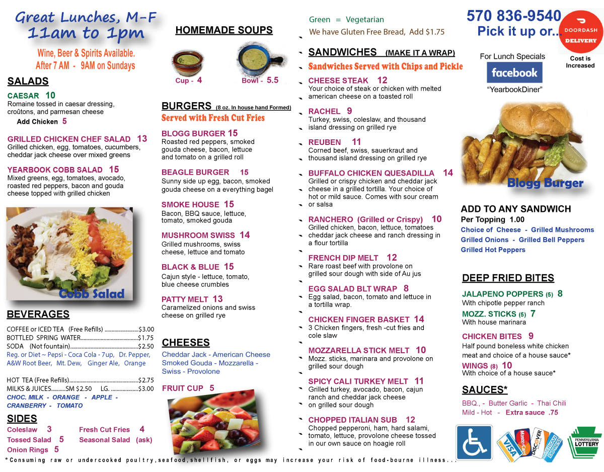 The Blogg Pub & Grill is well known for great burgers and entrees. Also at same location is the Yearbook Diner,